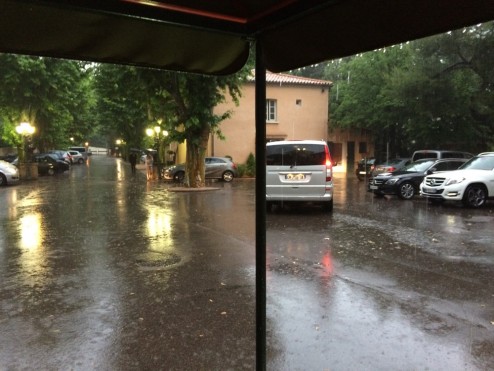 Malheureusement, arrivé à hauteur d’Avignon, la pluie a fait son apparition et s’est transformée en orage durant toute la soirée. Mais qu’à cela ne tienne, ce n’est pas quelques gouttes (fussent-elles nombreuses et annoncées pour tout le séjour !) qui va décourager un belge, Christophe Lambert (qui est un peu belge aussi par sa mère) et les organisateurs.