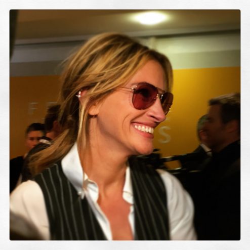 Ce jeudi 12 mai 2016 fut marqué par la présence à Cannes de Julia Roberts. C’était sa première fois au Festival Cannes. Les organisateurs – tout heureux – lui ont réservé un accueil de star sur le tapis rouge. Julia Roberts était présente pour le film Money Monster de Jodie Foster dans lequel elle interprète Patty Fenn au côté de George Clooney et de l’excellent Jack O’Connell, totalement invisible sur le red carpet sous les cris des photographes pour ses collègues de jeu. La journée fut également marquée par le retour à Cannes d’Alain Guiraudie (L’Inconnu du Lac) venu présenter Rester Vertical.