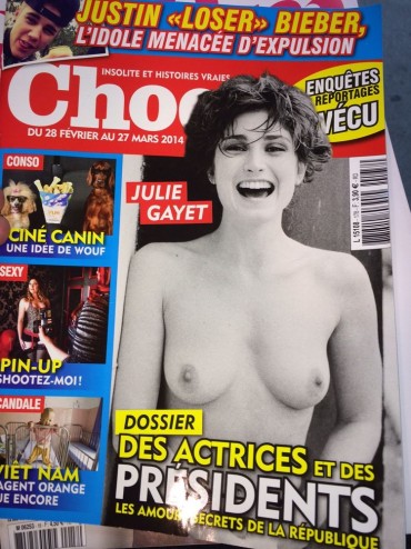 Comme la RTBF ne m’appellerait jamais, j’ai décidé de prendre le train, de quitter le soleil du centre du monde (Europe – Crimée – Obama) pour débarquer sous la pluie dans les hangars maritimes où se tenaient le festival. Mais avant de vous parler de La Rochelle, voici la couverture choc du magazine Choc que j’ai découvert en attendant mon train à Paris :