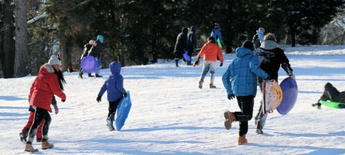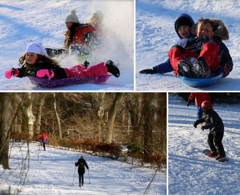 Les écureuils avaient tous disparus comme pratiquement tous les joggeurs pour laisser place à une nouvelle faune : celle qui aime le sport de glisse que ce soit le ski, le patin à glace ou la luge. Il y en avait pour les adultes, les enfants et les grands ados (qui devaient tous avoir congé aujourd’hui !)