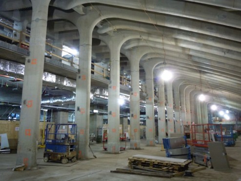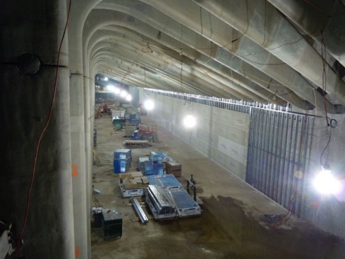 Et effectivement, en cherchant j’ai trouvé une petite porte dérobée qui même au futur couloir principal de la station. Le couloir est bien terminé comme en témoigne la photo ci-dessous mais la tour One World Trade Center et le centre commercial Brookflied Place ne sont eux pas encore terminés. Du coup, l’ouverture des magasins est en stand by encore pour une année au moins.