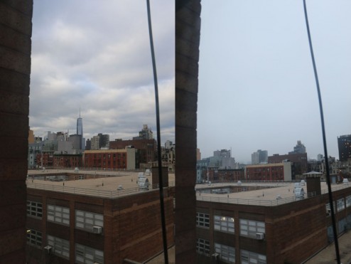 Alors qu’hier j’étais ravi de découvrir la One World Trade Center de la fenêtre de ma chambre qu’elle ne fut pas mon étonnement ce matin de découvrir qu’elle avait tout bonnement disparu ! Merde, encore un coup d’Al Quaïda !?!