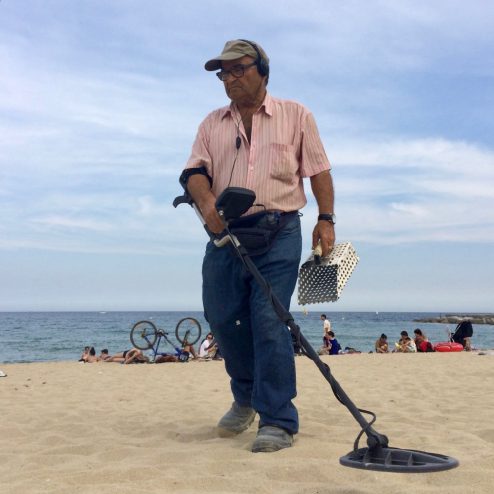 Bien moins bruyant et dangereux, ce sont les chercheurs de métaux. Ils sont là tous les soirs et ratissent centimètre par centimètre les plages de La Barceloneta.
