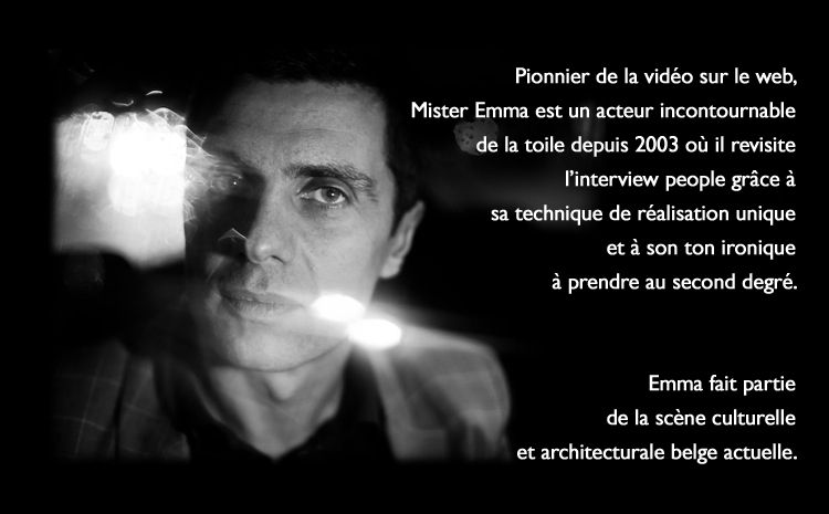 Pionnier de la vidéo sur le net, Mister Emma impose rapidement son ton singulier, un brin fouineur et espiègle mais toujours décalé et ironique. Au rythme des interviews people, des infos artistiques et autres articles tendance, le site www.misteremma.com devient une référence culturelle autant pour les internautes que les artistes. De Lio à Hugh Grant, en passant par des découvertes comme le groupe électro berlino-français Plateau Repas, les interviews se succèdent au fil des semaines et des années.