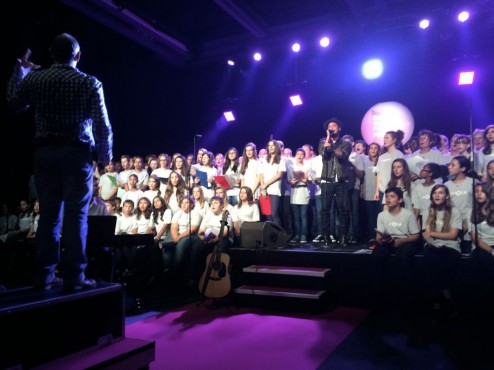 Il est déjà 18h30, Bastian Baker a fait son apparition pour découvrir les 200 choristes qu’il aura le plaisir d’accompagner (ou l’inverse) les 19 et 20 décembre 2014, sous la direction de Jacky Locks, sur la prestigieuse scène de l’Auditorium Stravinski ici à Montreux. Pour cette 5ème édition de Tous en chœur, l’ancien coach de The Voice Belgique prend la place de I Murvrini, Hugues Aufray, Michel Fugain et Henri Dès qui l’ont précédé dans cette aventure pleine d’émotions. Une rencontre en vidéo s’imposait pour le belge que je suis afin de savoir pourquoi il arrêtait The Voice. J’en ai profité pour lui parler de son concert qu’il donnera le 8 novembre à l’Ancienne Belgique à Bruxelles et ai tenté de faire un duo avec lui… Le résultat est à voir dans la vidéo ci-dessus.