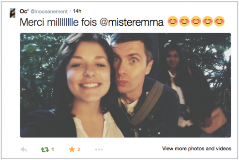 Je terminerai cet article en vous parlant de ma premère fan Suisse. Petit selfie de son twitter :