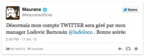 L’histoire, sommes toutes assez drôle des tweets de Maurane est cependant terminée, elle a annoncé hier après-midi que son manager s’occuperait désormais de gérer son compte…