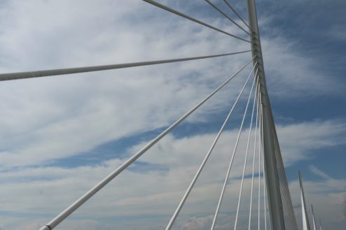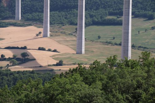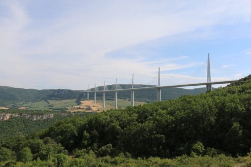 Conçu par l’ingénieur français Michel Virlogeux et dessiné par l’architecte anglais Norman Foster, le Viaduc de Millau présente des dimensions exceptionnelles : 7 piles en béton soutiennent un tablier et 7 pylônes d’acier sur une hauteur totale de 343 mètres sur une longueur de 2460 mètres.